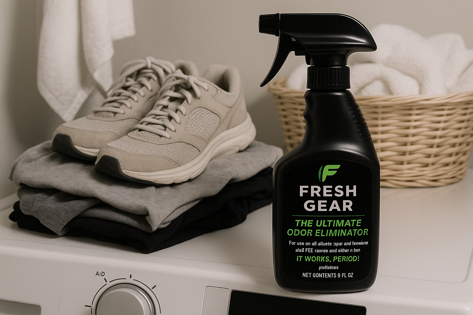 1) Spray It – Apply Fresh Gear to gear, clothing, shoes, or spaces.