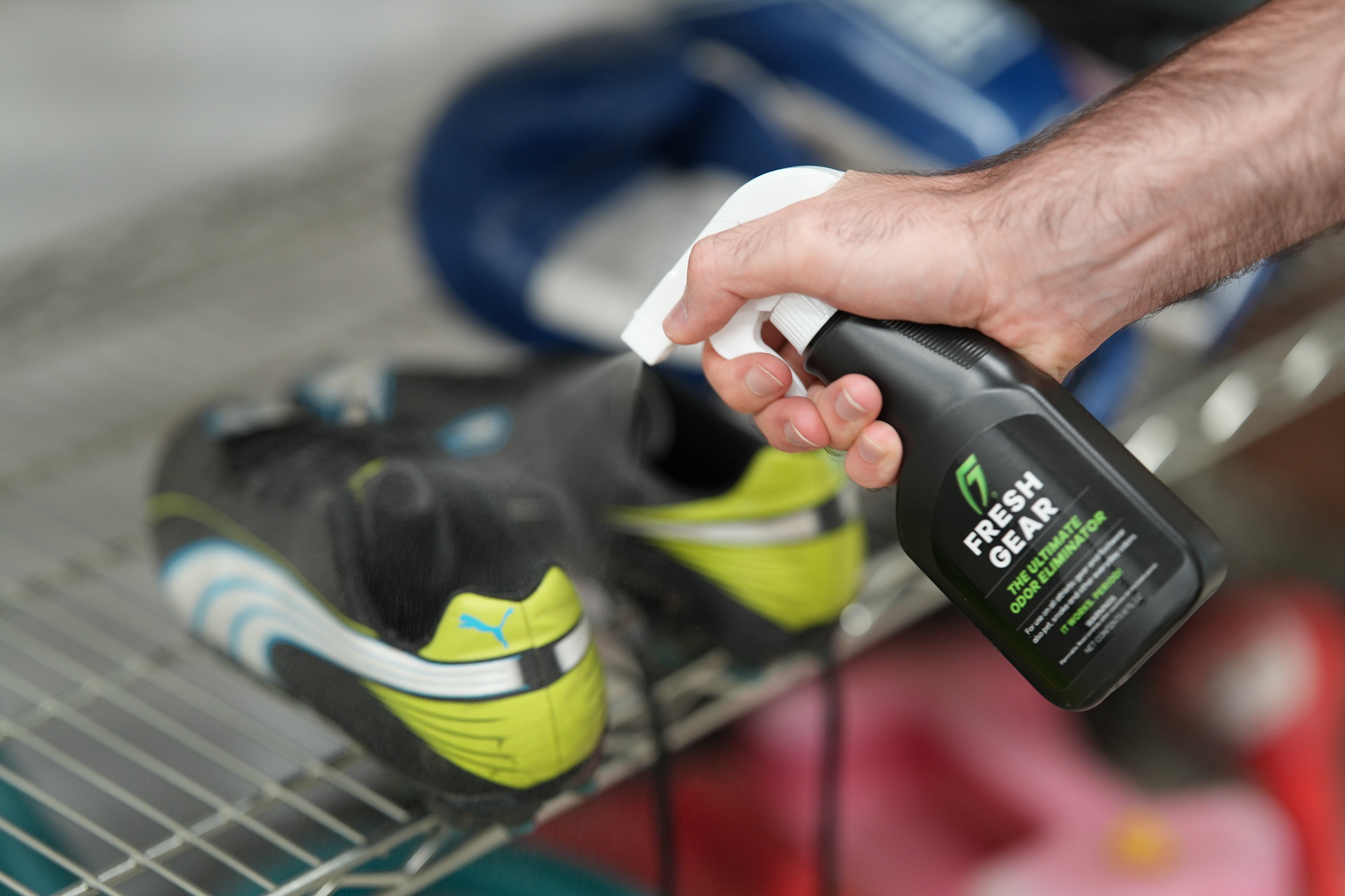 1) Spray It – Apply Fresh Gear to gear, clothing, shoes, or spaces.